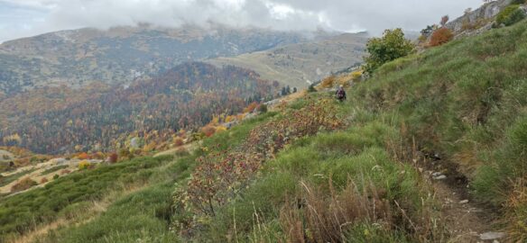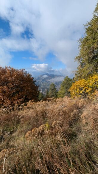 Départ sous un temps plutôt couvert avec quelques éclaircies passagères mettant en valeur les magnifiques couleurs de l’automne. Nous sommes passés à proximité d’un sapin Harpe gigantesque. Une belle légende nous est racontée à son sujet.