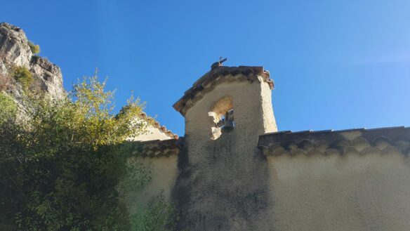 Arrivés au col de Saumane, vers 11h45, nous attendons l’autre groupe qui est monté au rocher de Jardanne et finalement nous entamons notre repas. Candice et Arthur en profitent pour jouer. Après l’arrivée de l’autre groupe, nous redescendons à 13h30 sur la piste forestière et arriver à proximité de la chapelle de Saumane qui a un air provençal avec son cyprès.
