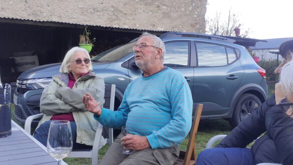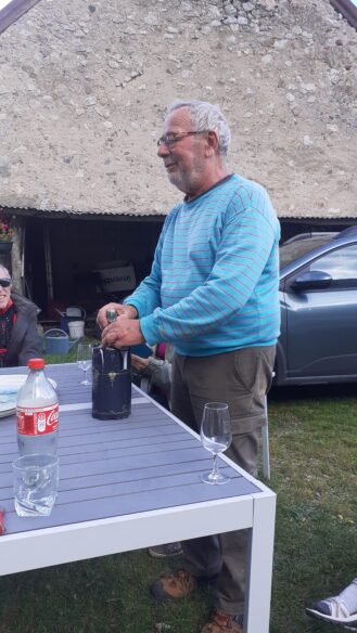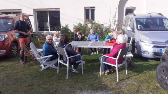Pourtant je n’ai partagé que quelques instants avec son groupe (au moment du casse croûte et de la collation prise au retour dans la cour de l’ancienne école de Pouillardencq) composé de 10 personnes : Serge et Marie, Jean-Luc, Josie, Yvonne, Chrisitiane… et d’autres dames que je ne connaissais pas du fait que je ne fais jamais de randos avec ces marcheuses aguerries trop véloces pour mon rythme lent, et dont je n’ai pas retenu les prénoms (je retiens déjà à peine ceux de celles avec qui je musarde et flâne habituellement le mardi, alors …).