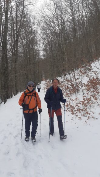 La rando douce ça laisse le temps à l’esprit de divaguer, au regard de s’accrocher aux paysages ou d’explorer la flore et parfois la faune comme savent si bien le faire Roselyne et Élisabeth. Peu de flore avec ces frimas mais des traces qui nous intriguent. Pattes de renard, empreintes de souris, traces de loup, sabots de cervidés ? Christiane et Christian nous éclairent au fur et à mesure de nos découvertes.