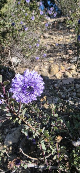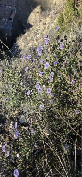 Nous sommes accueillis tout le long par des globulaires buissonnantes aux couleurs d’azur, et des tapis de thym…