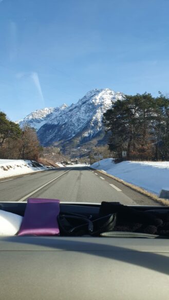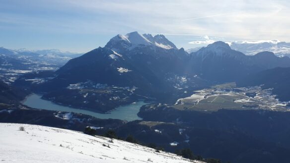 De la montée du Col Bayard à l’arrivée à Ste Luce, le paysage est éblouissant avec ces lumières matinales et hivernales. Bientôt la route longe des prairies alpines blanchies par les chutes de neiges récentes. L’Obiou en majesté, les autres sommets du Dévoluy à ses pieds, le lac du Sautet et ses eaux émeraudes qui reflètent ces sommités que je ne saurais toutes nommer.