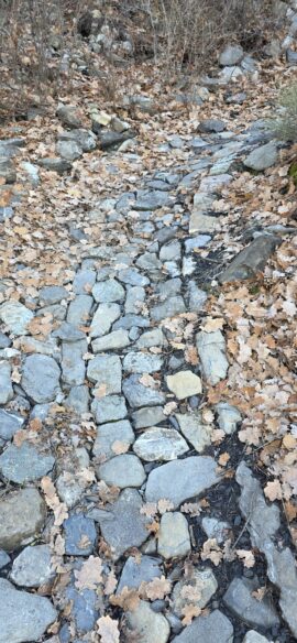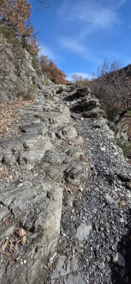 Le joli chemin pavé du début s’avère avoir beaucoup souffert des intempéries et ne l’est plus guère à mesure de notre progression.