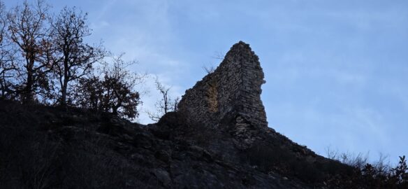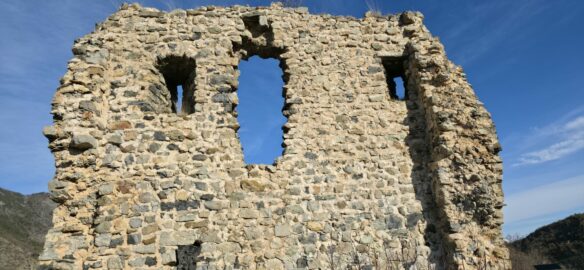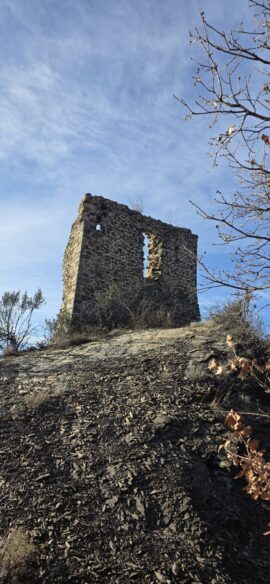Nous arrivons à ce qu’il reste de la Tour de Guet Carrée du XIIème siècle. Le panorama justifie son emplacement !…