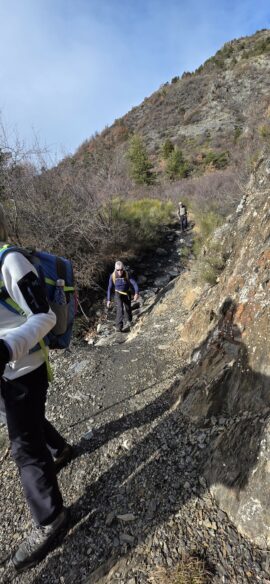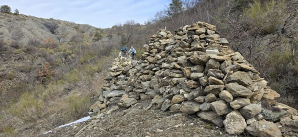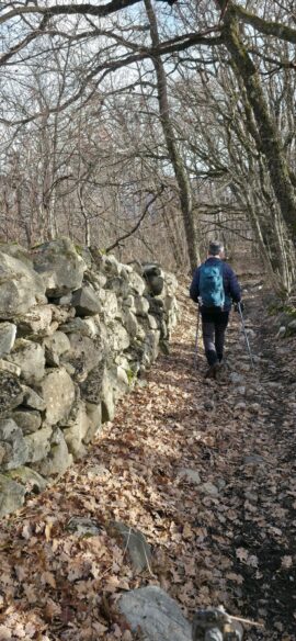 …où nous longeons un mur de soutènement témoin du travail des anciens qui s’acharnaient à préserver leurs chemins… (cet acharnement existe-t’il encore au vu des multiples éboulements !?…)