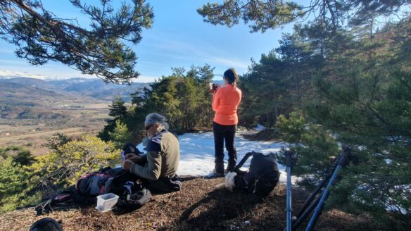 Une petite pause vers l’antenne relais, où le panorama s’enrichit avec Céüse et le Dévoluy…