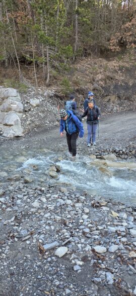 Nous passons devant la stèle en hommage à un jeune admirateur des lieux qui y a laissé sa vie lors d’une chute du Beynon… et nous retraversons le torrent..