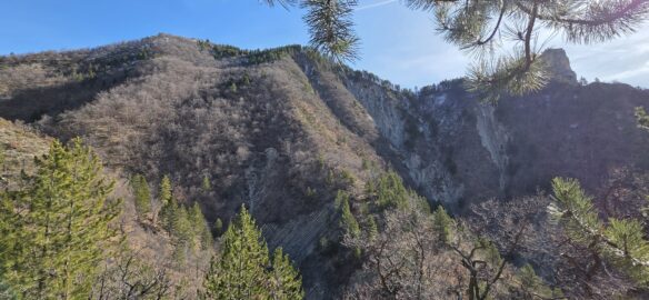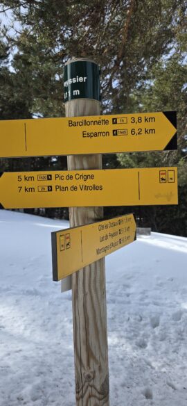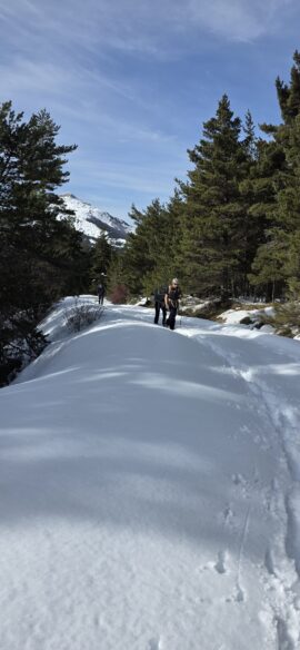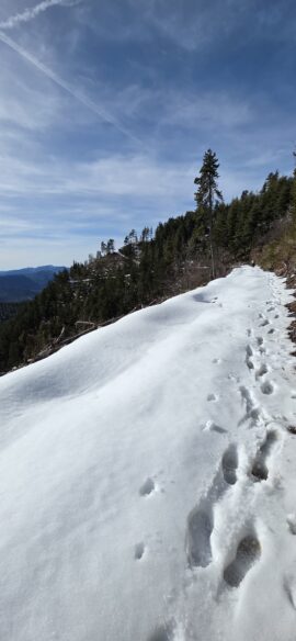 Nous longeons le sentier en balcon bien enneigé lui aussi… qui va nous ramener au-dessus du Pas de Rochecourbe…
