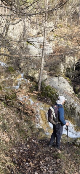 …que nous suivrons jusqu’au Pas, sur un sentier parfois grignoté par les eaux du torrent, très agréable, dans cette belle forêt du Beynon…