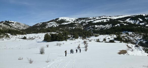 La neige nous accueille sur le plateau !… mais personne n’a mis les crampons…