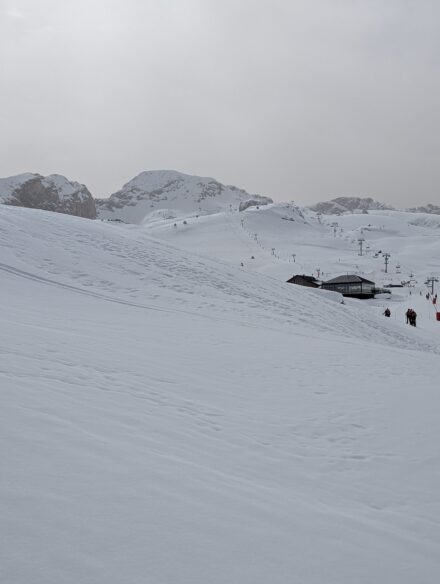 A l’approche de notre pause pique-nique, le volume sonore s’est amplifié… Skieurs, musiques rompent le charme du lieu.