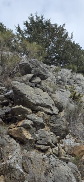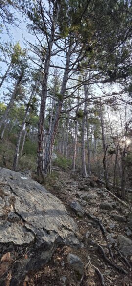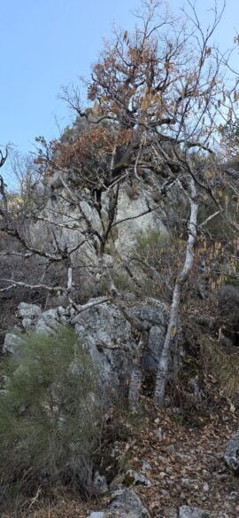 Nous arrivons au Petit Abian, où nous quittons la piste pour un joli sentier, puis sous la crête de la Blachère et du Rocher de l’Aigle, toujours en direction de la Gypière…