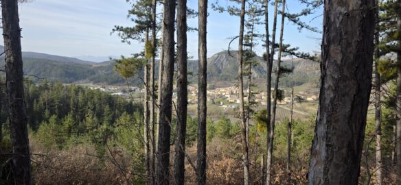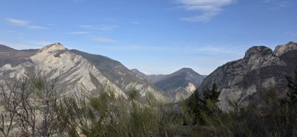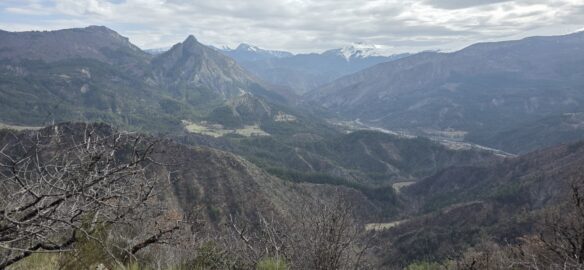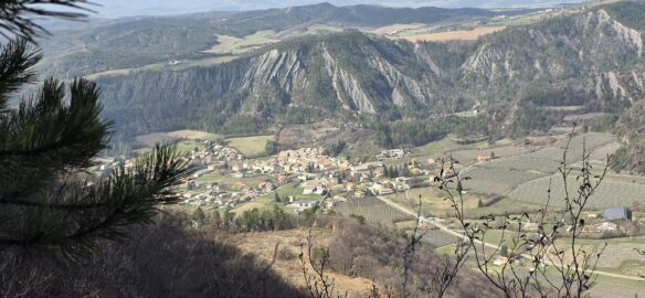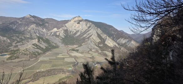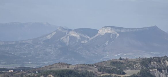 Après une petite grimpette nous rejoignons le Grand Abian, très beau point de vue sur les Écrins, St Génis, le Ventoux…et le village de la Motte du Caire.