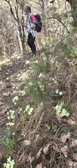 Au niveau de Pierre Barnaraye la descente commence dans les feuilles mortes encore intactes sur une bonne épaisseur…jusqu’au ravin de la Gypière que nous suivons au plat à présent, le sol inondé de fleurs printanières…