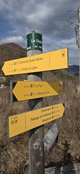 Huit personnes au départ de Gap ce Dimanche 8 Mars 2026… Arrivés à la Motte du Caire par un itinéraire touristique et apprécié !?… Une suggestion a été très brièvement évoquée en l’honneur de « la Journée de la Femme » : … »que les Participantes n’aient pas de fardeau à porter !… » Grand éclat de rire !… La bonne humeur et le soleil nous accompagneront toute la journée…