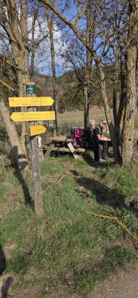 La traversée du village se fait sur une petite portion du chemin de Compostelle, le GR653D, sans croiser grand monde après l’accueil d’un Monsieur « chaleureux » envers certaines Dames à notre arrivée !!!…