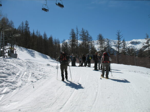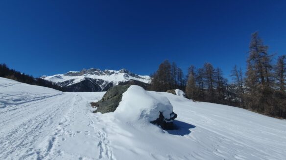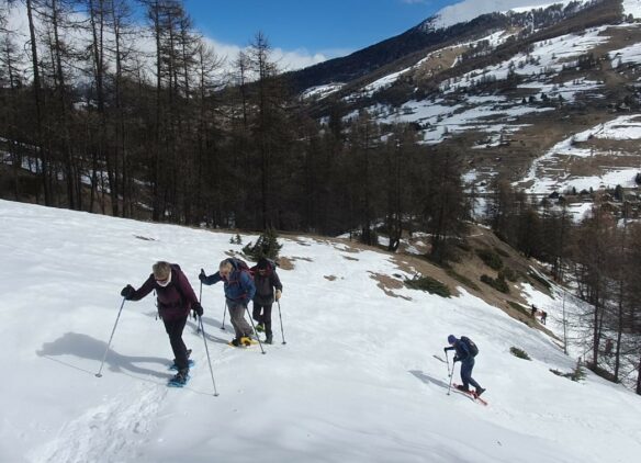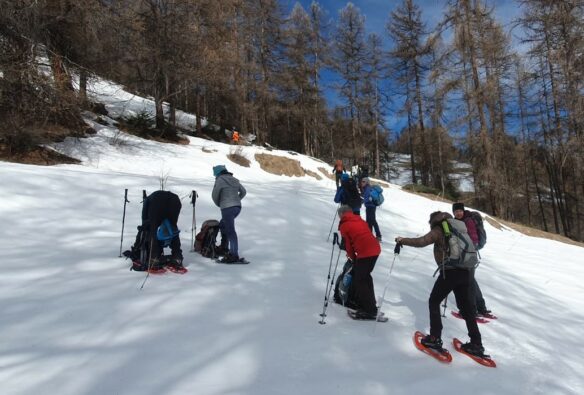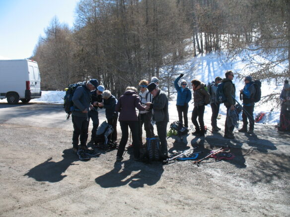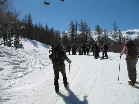 C’est une mise en « raquettes ». Nous faisons le parcours PIERRE GROSSE- St VERAN en aller/retour.