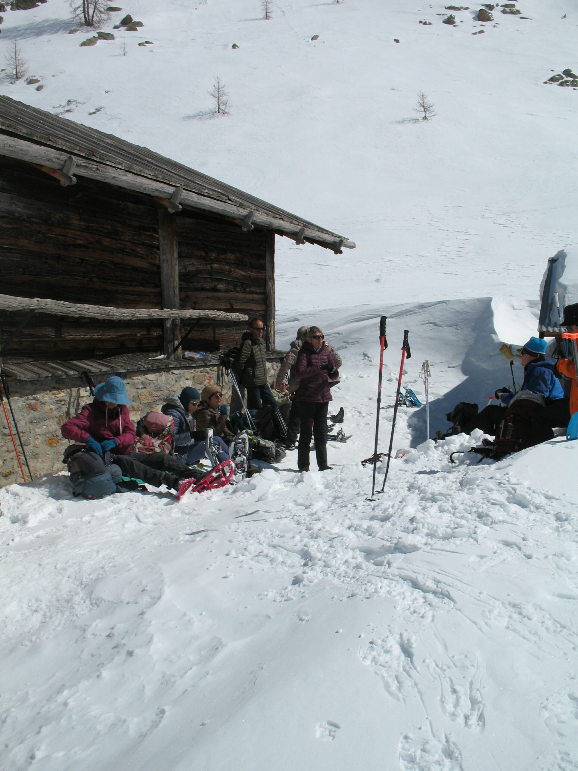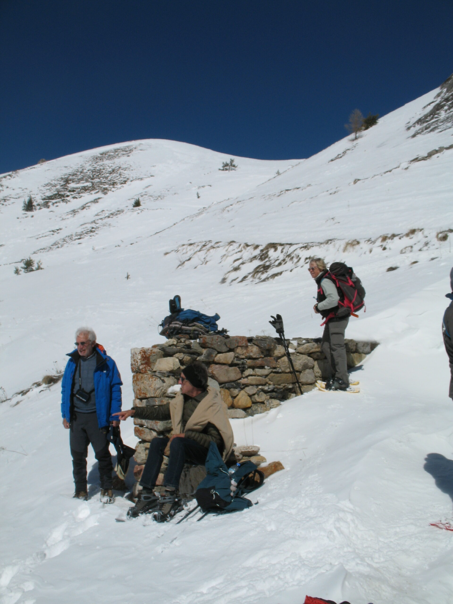 Belle neige, soleil généreux mais bourrasques qui nous obligent à nous abriter pour le pique-nique.