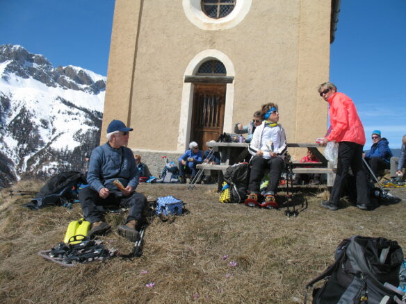 A l’heure du pique-nique, nous nous posons au pied de la Chapelle Ste Madeleine qui surplombe St Véran.