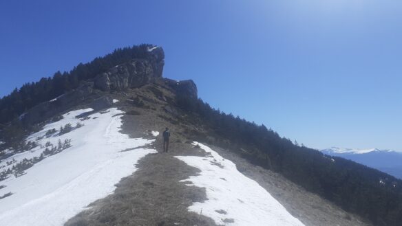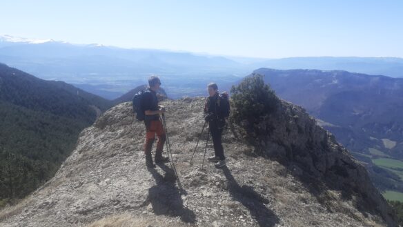 Aujourd’hui nous mettons le cap sur la montagne d ‘Aujour. Un peu de route nous attend pour rejoindre Villelongue/Savournon mais nous ne sommes que trois randonneurs motivés ! En plus, nous sommes chanceux, le soleil est au rendez-vous, le ciel bleu et la chaleur nous tendent les bras. La première étape de notre randonnée se fait au départ de l église. La montée est caillouteuse jusqu’au col de l ‘Armande avec des vues de cartes postales sur le Mont Ventoux et le Pic de Bure,c’est le bon moment pour faire une petite pose bien méritée et reprendre quelques forces.