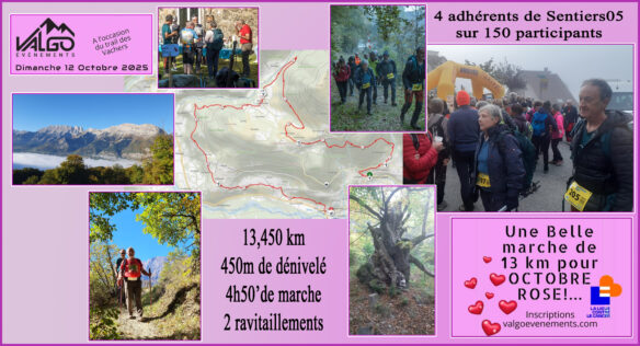 Le Vieux Pellafol : 7 randonneurs pour 11,5 km de distance et 325m de dénivelé Le Canal de Pellafol : 3 randonneurs pour 8 km de distance et 125m de dénivelé
