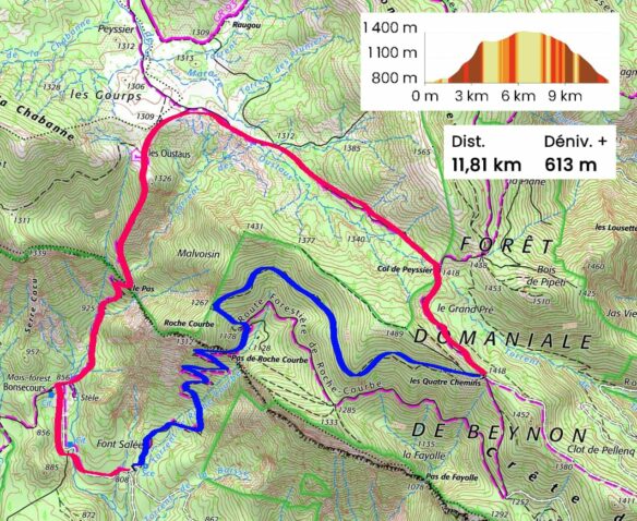 Nous suivons d’abord la petite route vers le Sud-Est, et prenons le Chemin de Pil Buisson !…
